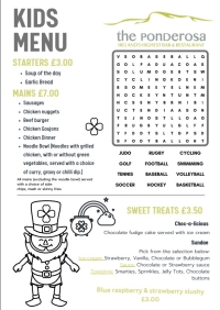 We are open 7 Days a Week, check out our opening times and menus below: